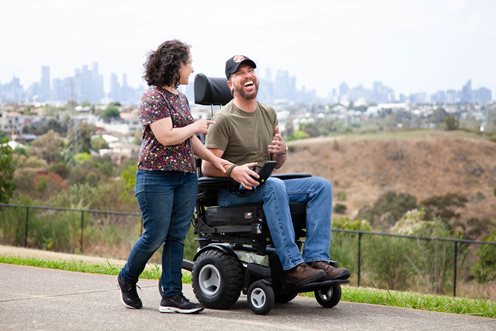 マジック 360は、電動シート昇降中も最高速度 5km/hで走行できます。目線を友人に合わせたまま、スピードも保てます。あなたの日常生活に合わせられる車いすです。マジック 360は、あなたが望む通りの人生を選択することを可能にします。