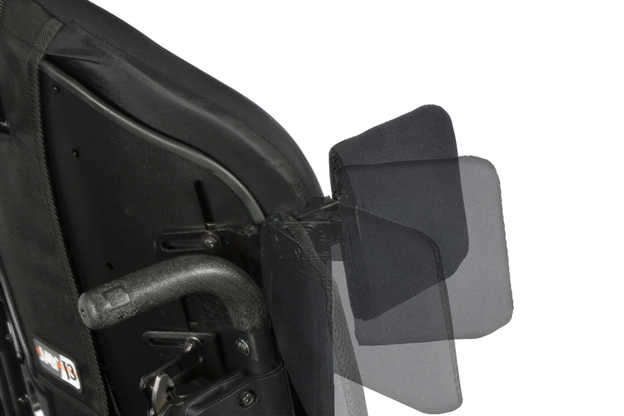 JAYスイングアウェイラテラル胸椎サポートは、JAY J3車いす用バックを補完するために設計され、ユーザーに最適な体幹サポートと安定性を提供します。幅広いポジショニング オプションと、さまざまなサイズのラテラル パッドのサイズを提供し、幅広いニーズに対応します。使いやすいプッシュボタン式レバーにより、ラテラルパッドが邪魔にならず、移乗が簡単です。