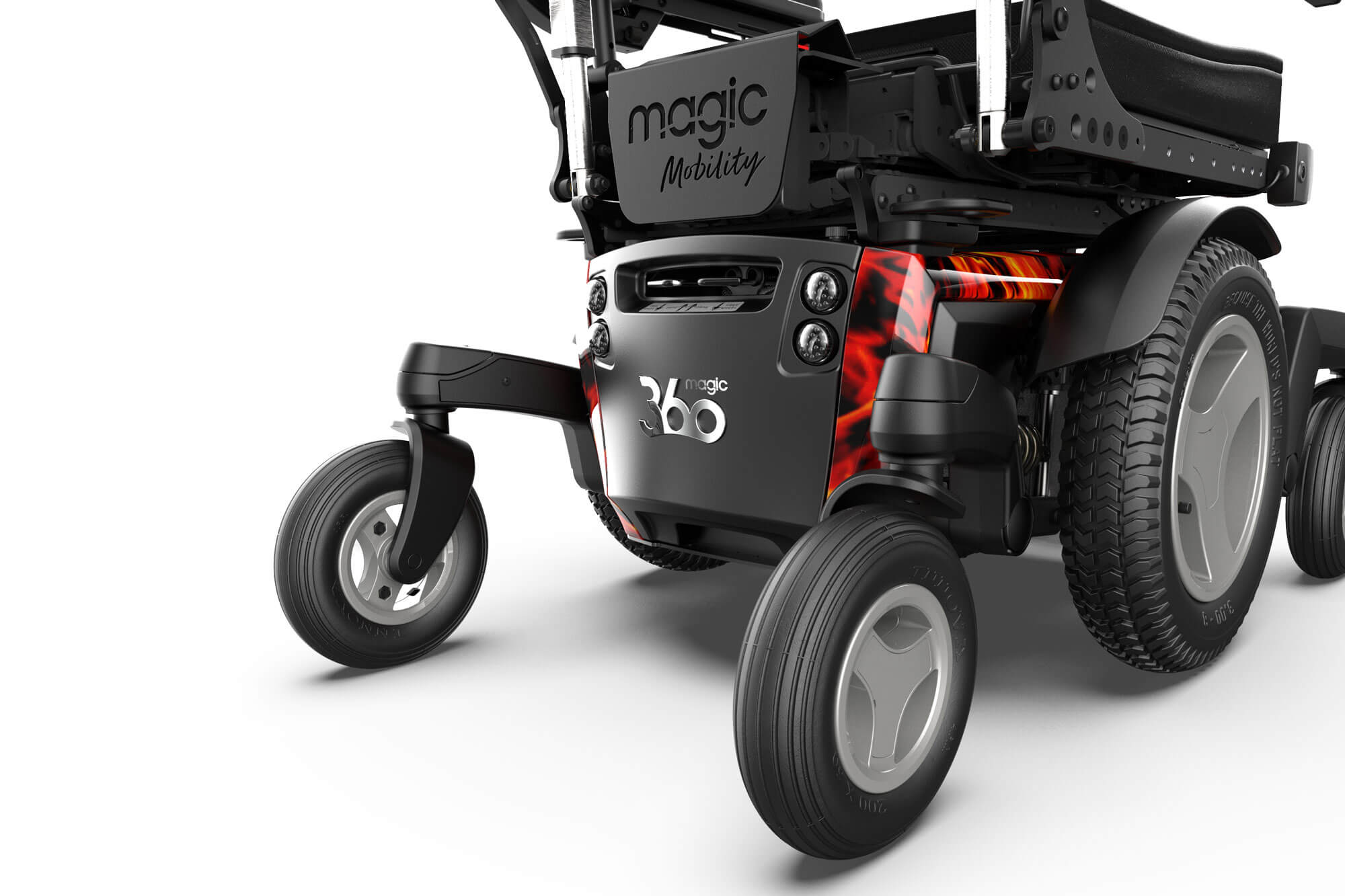 マジック360は、全地形エキスパートによって設計されています。完全に独立した全輪サスペンションが、あなたとあなたの体を守ります。さらに、簡単に交換できる 3種類のホイール、アーバン(街仕様)、クロスオーバー、オフロード(写真はオフロード)は、あなたの世界を今までにないほど広げます。
