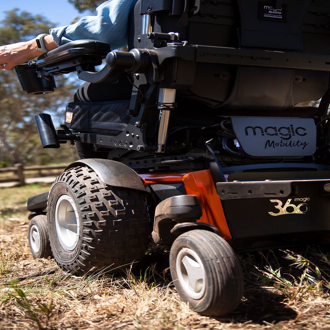 全く新しい マジック 360 をご紹介します!オフロードでも、芝生でも、どこでも走行できる唯一のコンパクト電動車いすです。